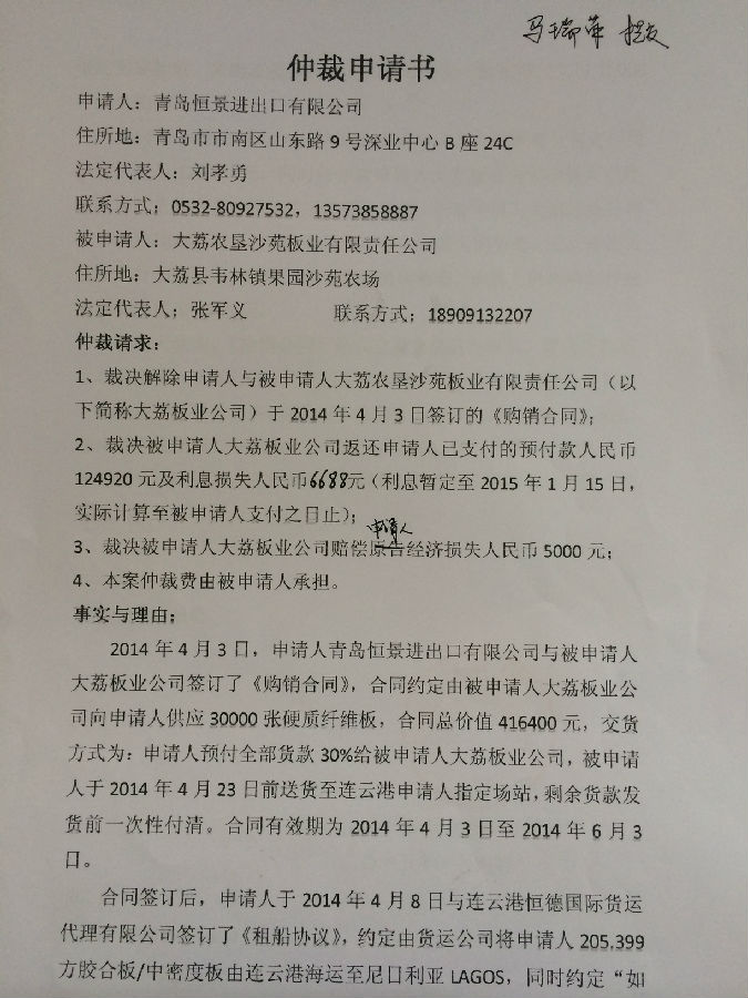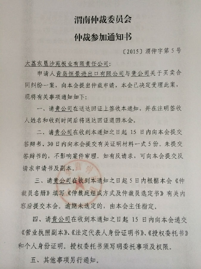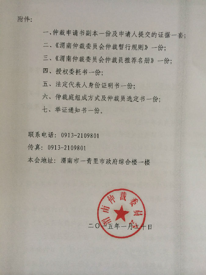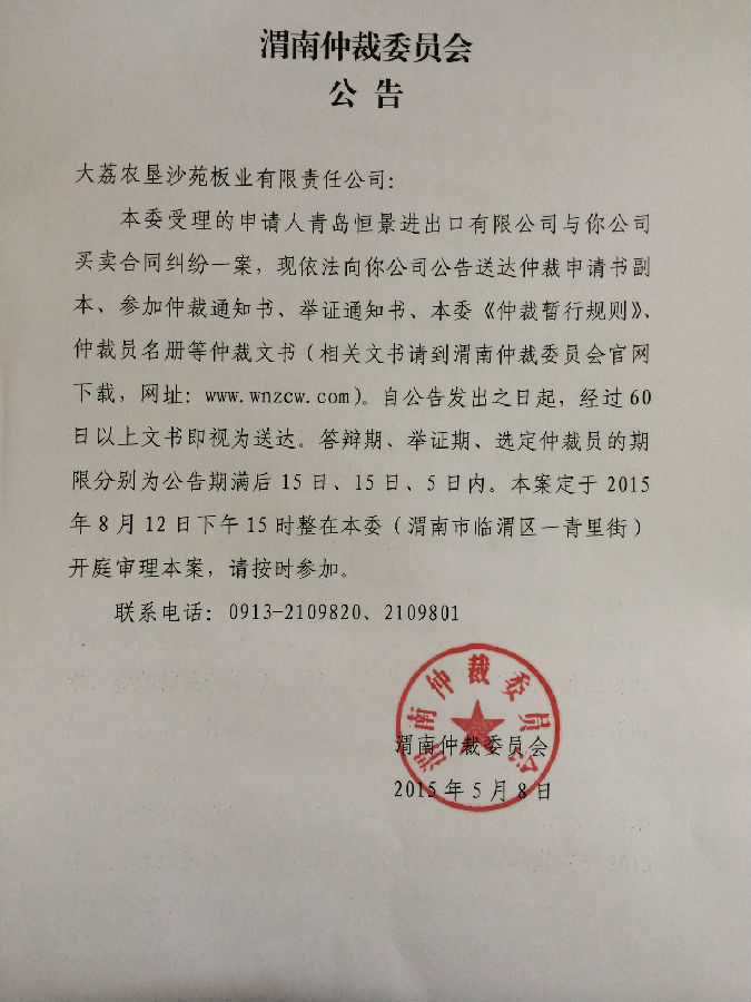 [2015]渭仲字第5號(hào)案件公告