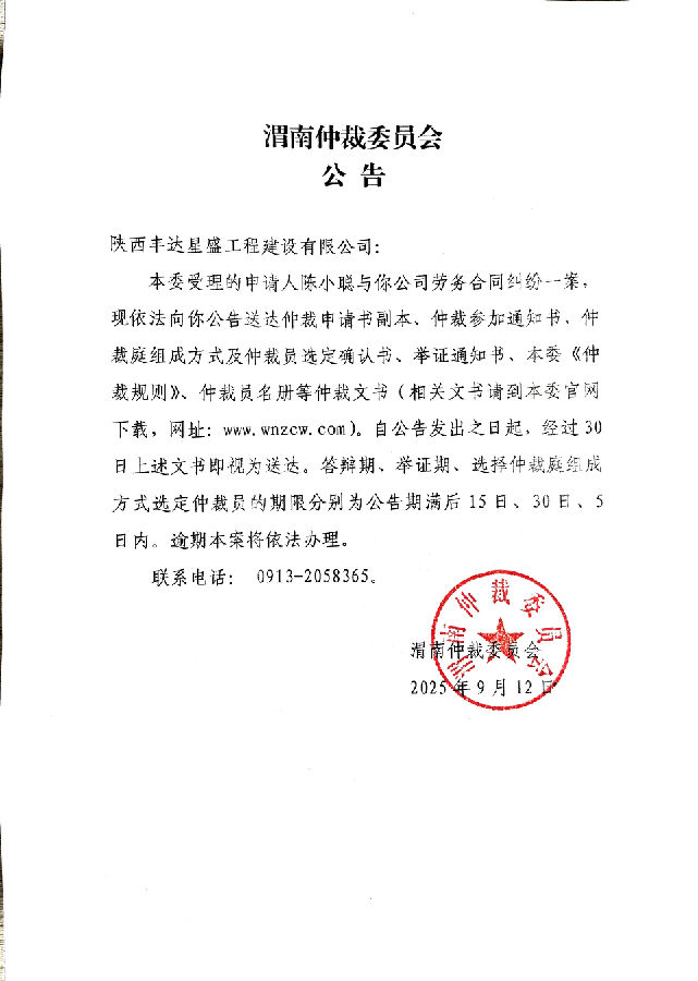 陳小聰與陜西豐達星盛工程建設(shè)有限公司勞務合同糾紛案公告